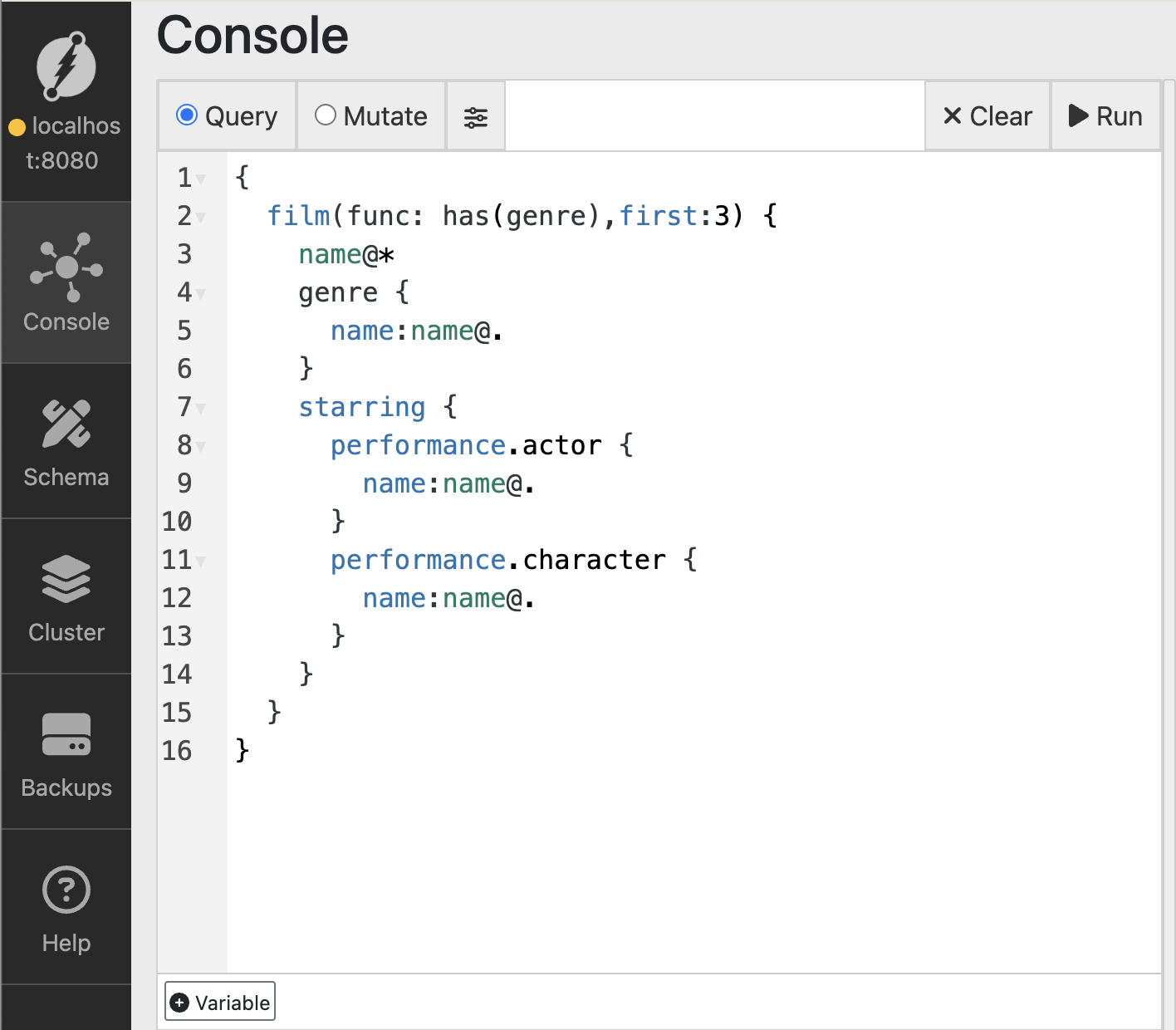 2. Enter http://localhost:8080 as the Dgraph connection string